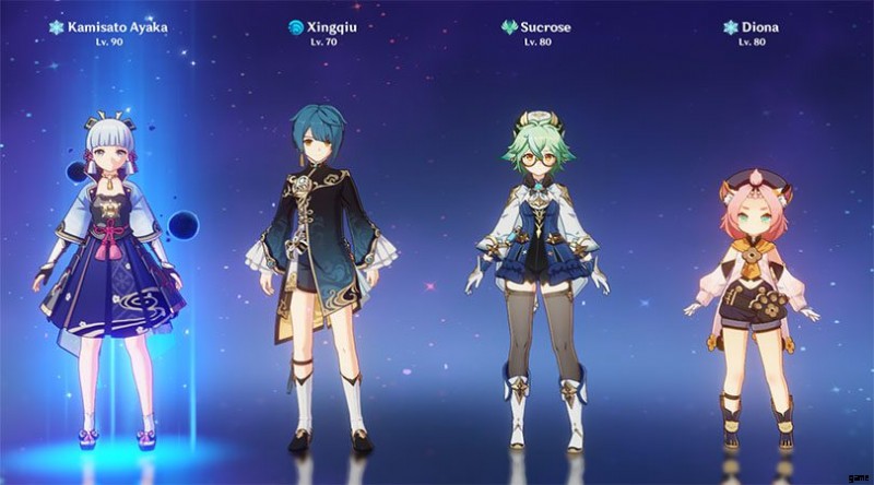 奈落の底で最もプレイされたチームの中には、Ayaka / Shehne / Kazuha / Kokomi があります。 Shehne は Cryo ダメージを大幅に増加させます、Kazuha 敵をグループ化して要素ダメージを増加させ、ココミは効果的にハイドロ要素を適用しながらチームを回復します.