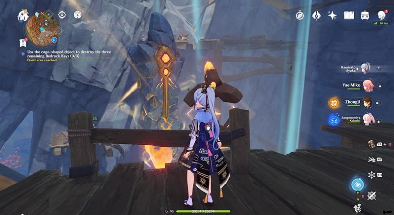 岩盤の鍵は、秘密の 7 つ星の封印の分離で最も技術的な部分です。 .キーの場所はマップ上に示されています。好きな順番でそこに行ってください。キーからのエネルギーの流れによって、ケージ型のジオを簡単に見つけることができます。各キーの近くに、充電するジオ ストーンがあります。