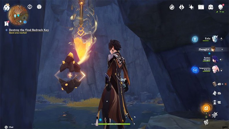それらを見つけるには、キーからのエネルギーの流れに従ってください。岩盤の鍵が破壊されたら、志瓊に戻ります。彼女は、さらに 3 つの鍵が入った地図をあなたに渡します。