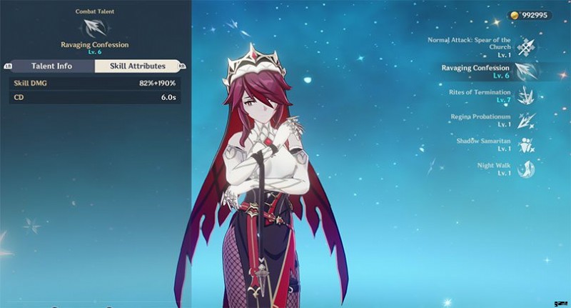 ロザリアがより多くのダメージを与えるには、まず荒廃の告白を有効にします エレメンタルスキル。これは、ロザリアがクライオ ダメージを与え、敵の背後にテレポートするダッシュです。受け身のレジーナ保護観察会を通して 、ロザリアのクリティカル率が 5 秒間 12% 増加します。ただし、この能力は敵が大きすぎる場合には機能しません。