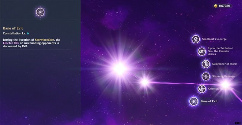 C6 ベイン オブ イービル Beidou のエレメンタル ランページがアクティブな場合、敵の電気抵抗を 15% 減少させます。
