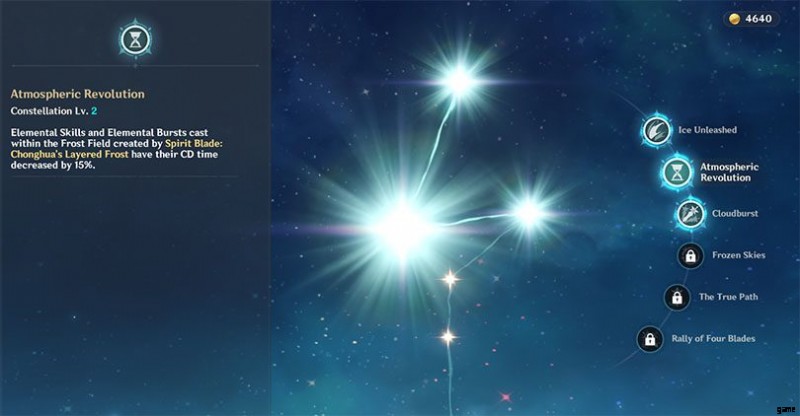 彼の C2 大気革命 彼は非常に良いサポートになります。チョンユンのエレメンタル攻撃によって生成されたエリアでエレメンタル スキルまたはランページをキャストすると、クールダウンが 15% 短縮されます。