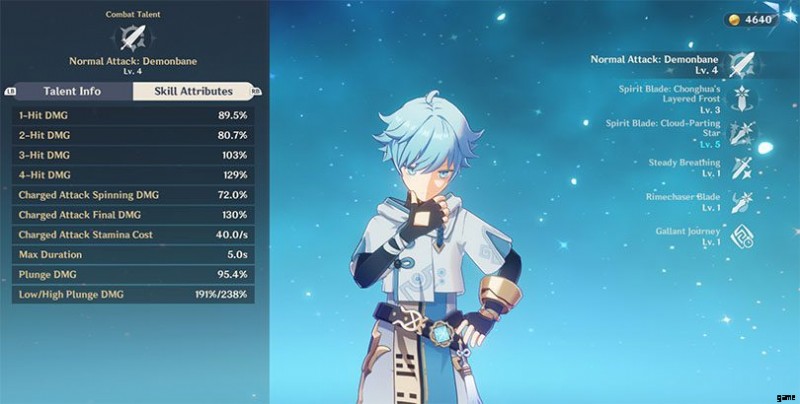 Chongyun をメインの DPS としてプレイするための秘訣は、彼が 4 つの剣の攻撃を連鎖させる通常攻撃を増やしてから、彼の暴走とエレメンタル アビリティを増やすことです。