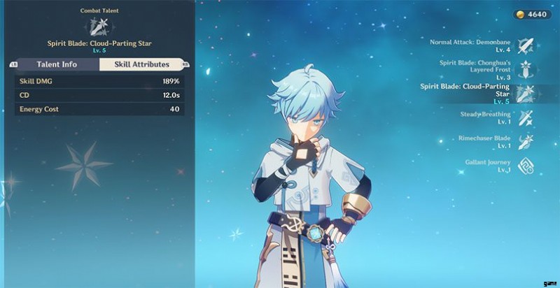 また、精霊の刃:雲を裂く星で定期的に大きなダメージを与えることができます 、チョンユンのエレメンタル大暴れ。彼は召喚した 3 本のフロスト ソードで範囲ダメージを与えます。このスキルは 40 エネルギー ポイントしかかからないので、簡単にキャストできます。