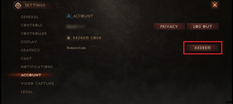 [有効化] をクリックします。 " ボタンをクリックすると、新しいウィンドウが表示されます。ギフト コード Diablo Immortal を入力するだけです。 [有効化] を押して有効にします ".