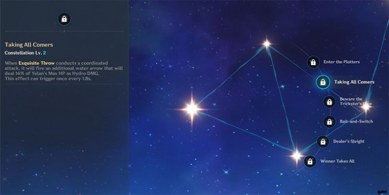 そして C3 Trickster's Dice に注意 、Yelan のエレメンタルの暴走を 3 レベル増加させます。