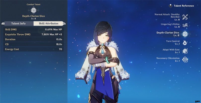 Yelan は主にサブ DPS として機能します 原神インパクトで。 星丘のように 、彼女は戦場にいなくても、エレメンタルランページでハイドロエレメントを適用できます。しかしそれだけではありません:Yelan がエレメンタルの大暴れ Depth-Clarion Dice を起動すると、 、彼女はアクティブなキャラクターを15秒間追跡するサイコロを召喚します。