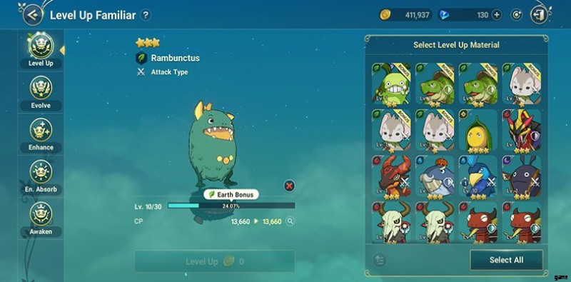 - 覚醒 :使い魔と同一の複製使い魔を使用して覚醒させ、ステータスを増加させ、スキルを強化します。レベル 10 の覚醒まで行くことができます。