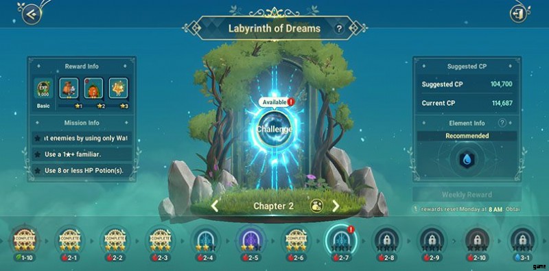 - 各パワーアップ ダンジョンを完了する おなじみの卵を手に入れるために毎日 そしてドリームシャード (それらを孵化させるために必要なリソース)、機器のアップグレード、および金。各ダンジョンには 8 つの難易度レベルがあり、ダンジョンの一貫性が高いほど、より多くの報酬が得られます。