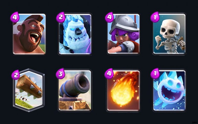 このデッキは非常に攻撃的でプレイが複雑です 、しかしランキングであなたを非常に高くすることができます。平均でわずか 2.6 エリクサー ユニット 、これはゲームのコントロールを維持する必要があるデッキです。ゲームの早い段階で対戦相手を攻撃してペースを設定するのはあなた次第です。 アイス ゴーレムを送る 敵のタワーの標的にされたら、ホグ ライダーの出番です 遊びに来る。