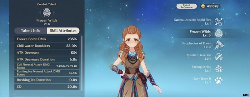 追加ボーナスとして、戦闘オーバーライド パッシブは、少なくとも1つのコイルの影響を受けると、アロイのATKを16%、近くのキャラクターを10秒間8%増加させます。 ストロング ストライク Rush Ice状態のとき、パッシブはAloyのCryoダメージボーナスを最大35%増加させます .