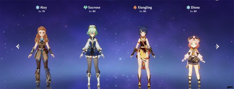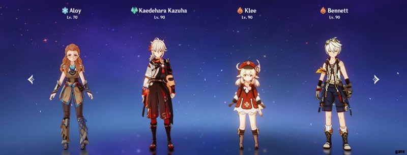 また、2 つの Cryo キャラクターを選択することもできます:Aloy / Diona / Xiangling / Kazuha または別の Anemo キャラクター。