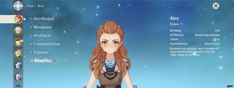 残念ながら、アロイを入手することはできなくなりました。彼女は、キャラクター イベントのウィッシュまたは標準のウィッシュで前方入札を取得しません。また、RPG の他のすべてのキャラクターとは異なり、彼女には星座がありません。