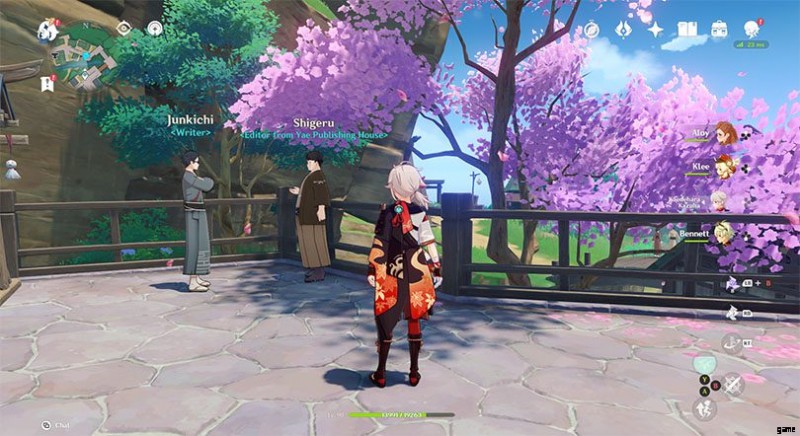 ストーリーテリングの方法 原神インパクトの隠しクエストです。 ジン吉で打ち上げられる とシゲル . 2 人の NPC はイナズマの街、鍛冶屋のすぐ隣にいます。しかし、彼らに話しかけても、ワールド クエストを知らせる伝統的な青い感嘆符は表示されません。