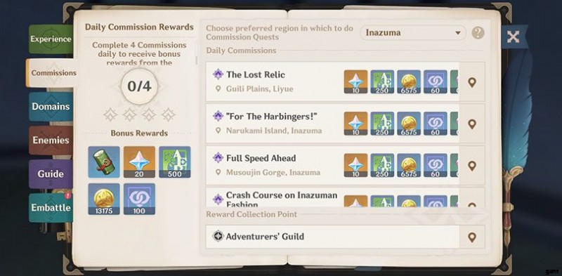 Genshin Impact Storytelling Method クエストのロックを解除するため 、次の 3 つのデイリー コミッションを完了している必要があります: