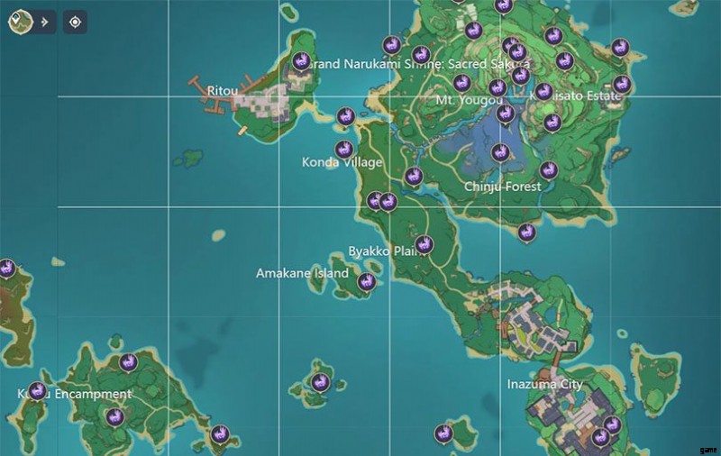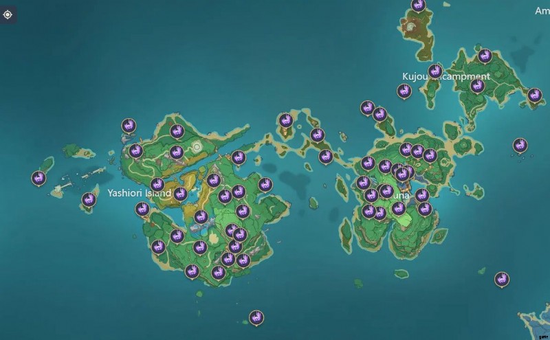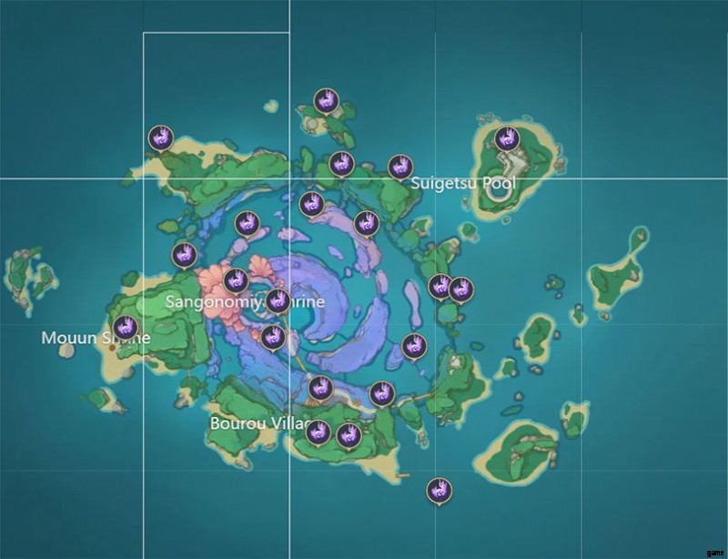 最初に九条キャンプの東の小さな島にあるエレクトロクルスを収集し、次に神無塚の南に移動してからヤシオリ島に移動することをお勧めします.