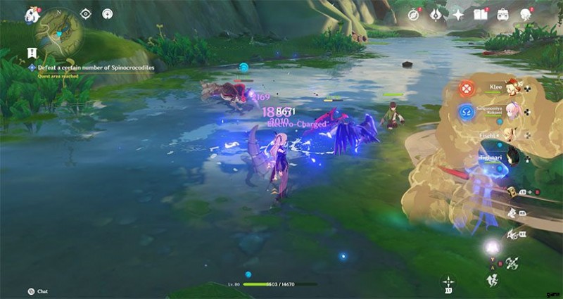 3 つのエリアをクリアすると、ラナからスピノクロコダイル を排除するよう求められます。 .クロコダイルを倒すのはそれほど難しくなく、肉をたくさん与えるという利点があります。