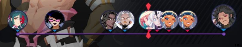 味方または敵を選択すると、肖像画の上下に小さなひし形が表示されます。このようにして、バー上のこのキャラクターの位置を簡単に見つけることができます。また、彼の番がいつ来るかについても把握しています。