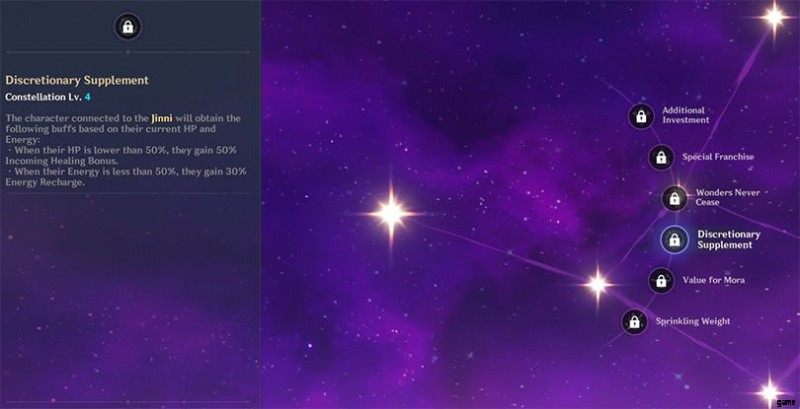 原神インパクト通りをプレイする場合 ヒーラーとして、彼女の星座がなくてもできます。ただし、キャラクターと彼のダメージを改善できます。彼のC1 エレメンタル攻撃とC2でショット数を増やします 、ドリのジンは、キャラクターを癒すときに敵にショットを放ちます。