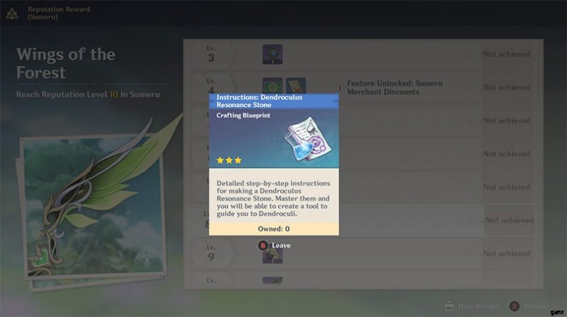 ボーナスとして、レベル 3、5、7 に到達すると、Memories of Flourishing Green を獲得できます .このアイテムを使用すると、トラベラー デンドロの星座に登ることができます。