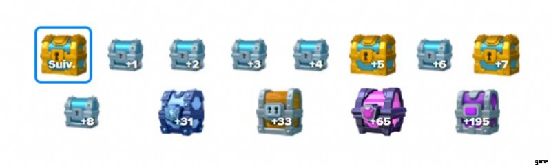 すべての統計の下に、現在のデッキと次のチェストが表示されます ロックを解除します。上の画像でわかるように、チェストには何回入手できるかを示す数字が表示されます。