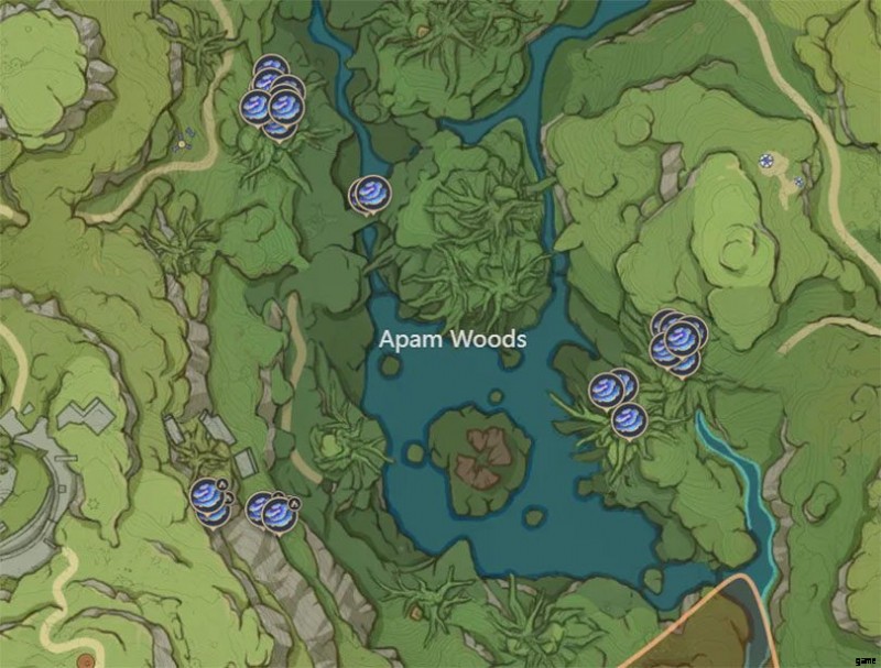 その後、アパムの森に行くことができます .この森を支配する 3 本の巨大な木に沿って、多くの聖なるキノコが生えています。それらを登ると、約15個のキノコを集めることができます。