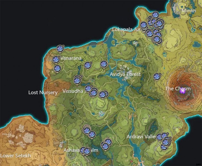 Tighnari を持っている場合は、彼を探索チームに入れて、検索を容易にします。 Sumeru コレクションを見せてくれます あなたのミニマップのあなたの周り。