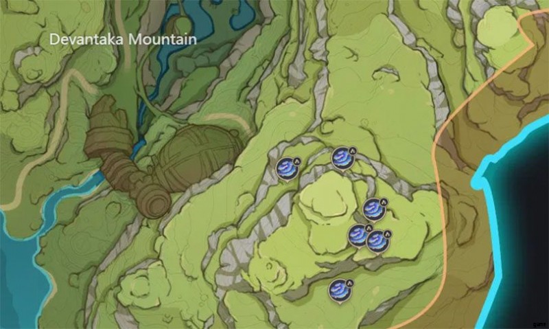 デバンタカ山の右側、スメルエリアの南東にも6つのキノコがあなたを待っています .彼らは洞窟に隠されています.