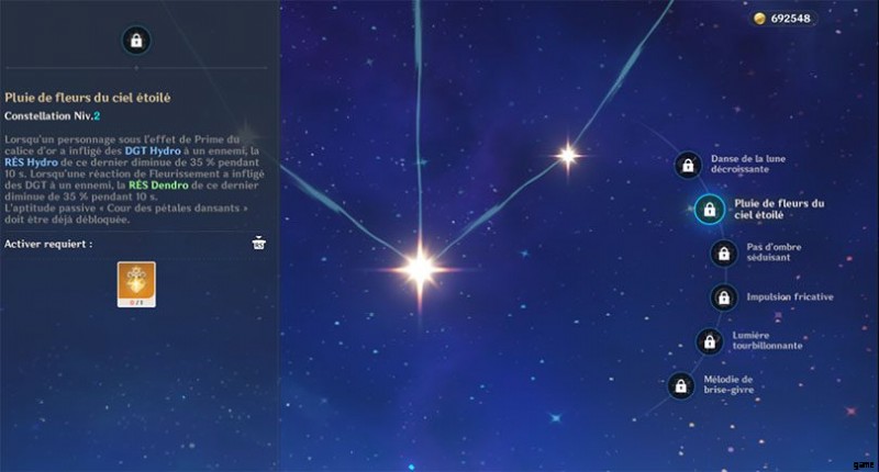 Nilouは、Genshin Impactで星座がなくても優れています.もちろん、さらに強力にすることもできます。特に彼の C2 星空の花の雨について考えます。 敵のハイドロとデンドロの耐性を 10 秒間 35% 低下させます。