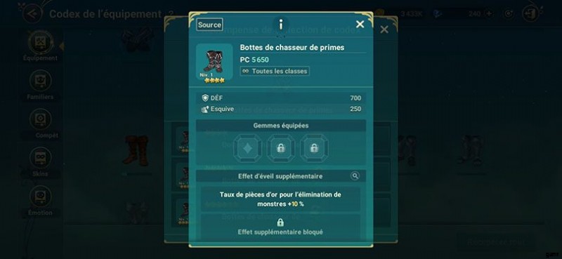 バウンティ ハンター ブーツを履いている場合、モンスターを倒すと 10% 多くのゴールドを獲得できます .このアイテムは、鍛冶屋またはゲーム ショップで装備召喚を行うことで略奪できます。
