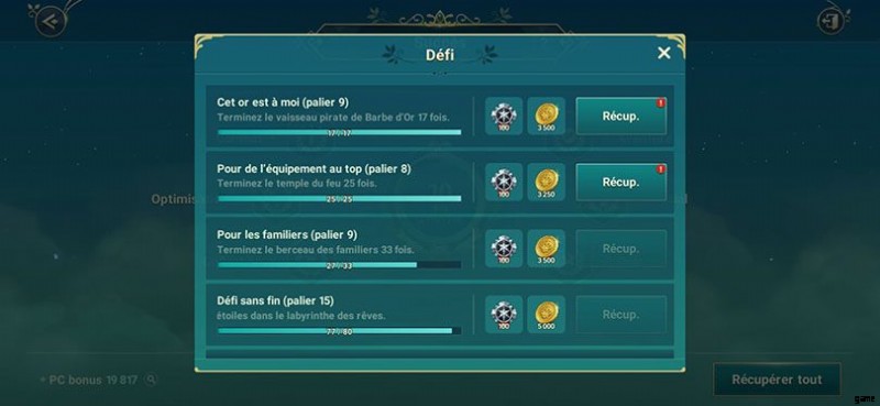 - 決闘の法廷 :他のプレイヤーと対戦することで、毎日宝箱とゴールドを獲得できます。