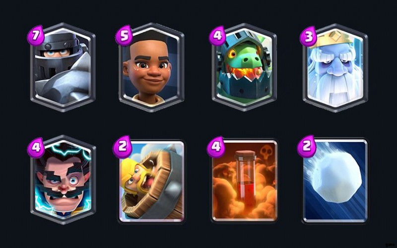 敵の攻撃を管理するために、メガ ナイトは依然として最高の資産です。ただし、Elixir では非常に高価です。できる限り呪文で防御してください :ポイズン、バーバリアン バレル、メガ スノーボール。