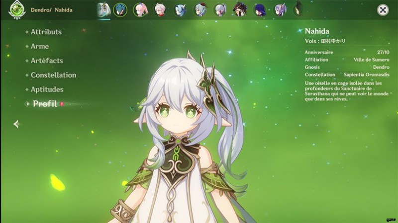 C’est tout pour ce guide consacré à Nahida de Genshin Impact , l’archon Dendro. Vous savez maintenant comment débloquer Nahida, mais aussi lui équiper son meilleur build. C’est actuellement le meilleur personnage Dendro , elle fera des ravages dans les abysses. Le personnage a pour avantage de très facilement appliquer l’élément Dendro, de booster vos autres personnages, tout en faisant de bons dégâts. Toutes ces qualités la rendent très flexible.