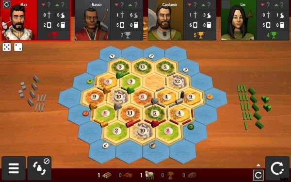 カタンは、プレイヤーが勝利点を獲得するために競争するトレーディング ゲームです。 24 時間拡張のロックを解除できるスクロールを獲得し、購入を決定する前に試してみることができます。カタン ユニバースのゲーム ビジュアルは際立っており、3D 視点に加えて、任意の角度からビューを選択する可能性があり、上からも見ることができます。