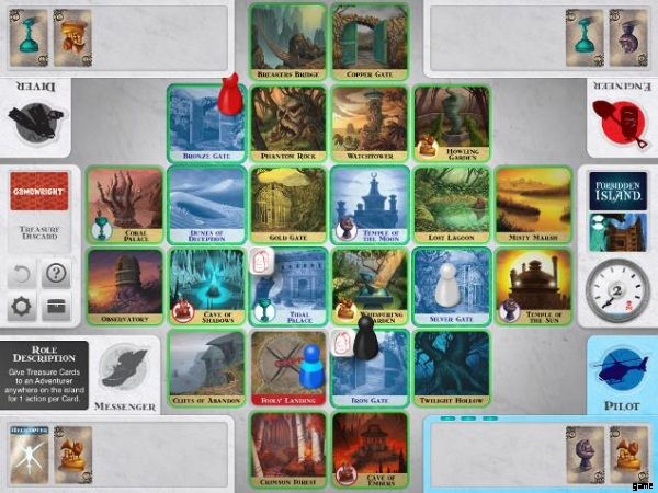 人気の電話ボード ゲーム、禁断の島は、ベストセラーのクラシック ゲームに基づいたスリリングなアドベンチャーです。これは最高の協力戦略ゲームです。目標は、沈みゆく島に隠された 4 つの古代の宝物を手に入れることです。この同様に挑戦的でやりがいのあるゲームのインターフェースも魅力的で、グラフィックは元のゲームのルック アンド フィールをうまく再現しています。
