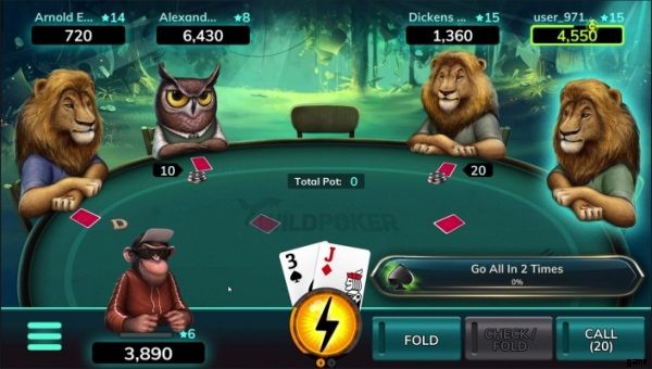 最も評価の高いモバイル ポーカー ゲームの 1 つである Wild Poker は、古典的なホールデム ポーカー ゲームにひねりを加えています。ライオン、シカ、フクロウ、チンパンジー、サメ、犬などの動物のアバターでプレイします。動物パワーアップの独自のチームを作成し、テーブルの達人になることができます。テキサス ホールデム ポーカーの楽しいバリエーションが必要な場合は、ワイルド ポーカーが最適です。