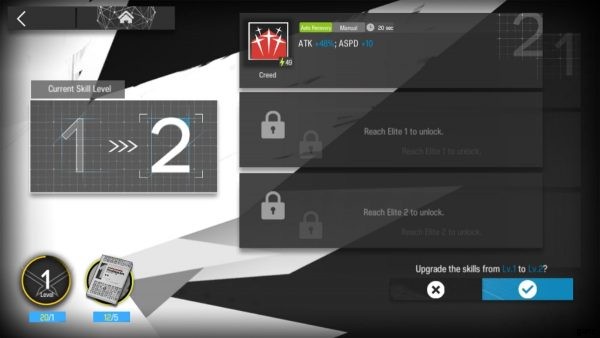 スキルについては、オペレーター管理に移動して、目的のオペレーターを選択するだけです。その後、メニューから「スキルアップグレード」を選択します。スキルのアップグレードには特定のアイテムと材料を使用する必要があるため、必要なアイテムが十分にあることを確認してください。