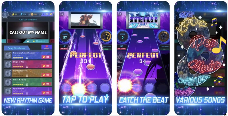 このゲームには、ジャッジメント ラインが適切なタイミングで交差したときに特定の音符をタップすると、より高いスコアが得られる独自のアクティブ ジャッジメント ライン メカニズムが備わっています。最初から 30 曲以上を利用でき、オプションでさらに 70 曲以上を購入できます。
