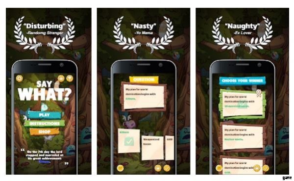 ゲームの名前はSay What?真剣に、それがゲームの名前です。カード・アゲインスト・ヒューマニティに非常に近いゲームプレイを持っているものを教えてください。他のほとんどのカードゲームとは異なり、これは友達と遊ぶのに適しています.