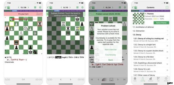 これらのレッスンでは、複数の戦術を学ぶことができるように、さまざまな戦術を教えます。それらを使用するか、対戦相手からそれらを認識することができ、チェスが指数関数的に上達します。さらに、このアプリはあなたの進捗状況を追跡して、あなたのスキル レベルに合わせて改善します。