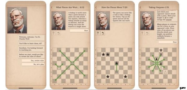 没入型のプレイというよりは、学習用のチェス アプリです。 Dr. Wolf があなたを導き、潜在的な戦術と過去の過ちの両方を示します。さまざまなチェスの概念を教える 25 のレッスンと練習を提供します。