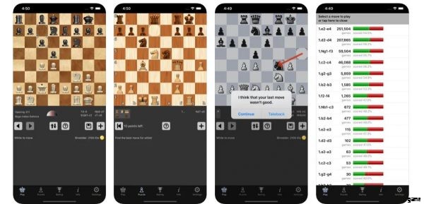 AI Factory Limited の Chess では、カジュアル モードまたはプロ モードで 12 レベルをプレイできます。ハンディキャップやタイマーで遊ぶなど、ゲームプレイを変えるために切り替えることができる設定もたくさんあります.あなたが競争力のあるタイプなら、このチェス アプリは実績とリーダーボードも追跡します。このチェス アプリはほとんど広告なしで無料ですが、広告を削除したい場合は 0.99 ドルかかります.