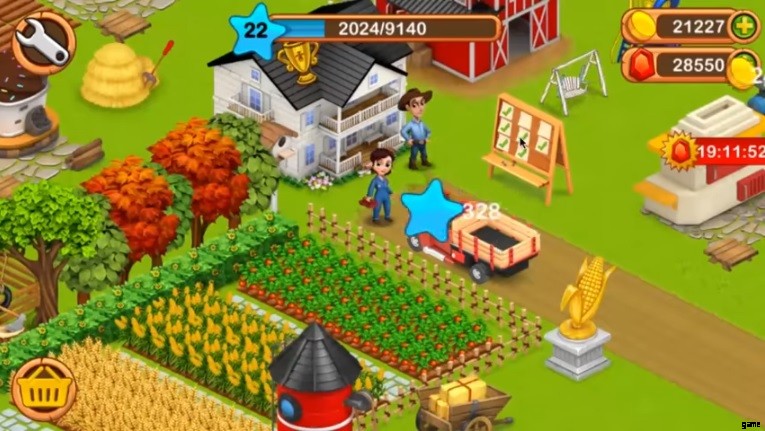 このゲームでは、町を建設し、農場をカスタマイズし、訪問者を歓迎します。ゲームプレイには、作物を育てて収穫し、トラックや蒸気船で販売することが含まれます。ドックから魚を釣ることができます。これらのタスクを通じて収入を得て、町と農場を改善してください。 Hay Day は、滑らかな 3D グラフィックと、お世話できるかわいい動物が特徴です。