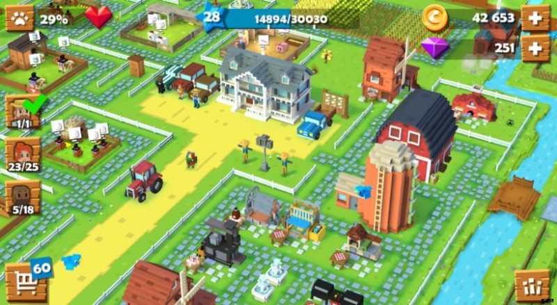 Blocky Farm は、3D Minecraft グラフィック、Farming Simulator、Stardew Valley ゲームプレイを組み合わせたものです。農場を管理し、建物をアップグレードし、かわいい動物の世話をし、魚を捕まえ、ボートに乗らなければなりません。トラクターやトラックを運転して畑から収穫し、商品を届けることができます。さらに、町の市民と友情を築き、スターデュー バレーのように変化する天候を体験できます。