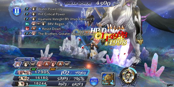 In Opera Omnia, you form a party of three for your battles. These come in waves of monsters that you must overcome to achieve victory. You have to use a combination of Brv and HP attacks to do so.