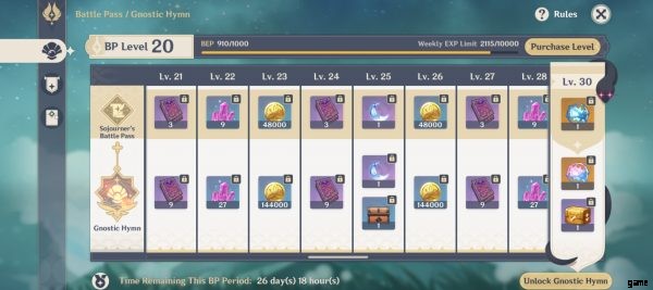 F2Pと有料の違いが最も大きいのは武器です。原神インパクトには、バトルパスと呼ばれる実績ボードがあります。 F2P プレイヤーはバトル パスの基本報酬を楽しむことができますが、有料プレイヤーは、追加の報酬とバトル パス専用武器が付属するグノーシス賛歌またはグノーシス コーラスのロックを解除することを選択できます。