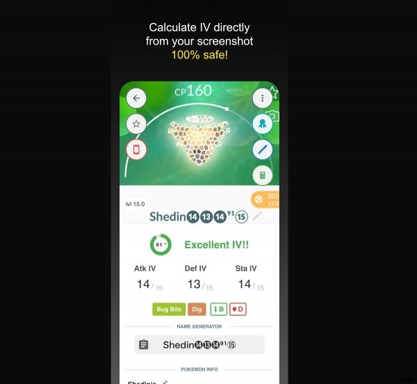 このアプリは、Pokémon Go アカウントの資格情報を提供する必要がなく、ゲームのオーバーレイとして機能するため、安全です。必要なのは、ポケモンの統計ページのスクリーンショットを撮り、スキャンをクリックするか、アクティブな Poke Genie アプリからインポートすることだけです。 Pokemon Go IV 計算機は、PvP IV の結果を瞬時に表示します。また、サイド メニューからネーム ジェネレーターなどの他の機能にアクセスすることもできます。
