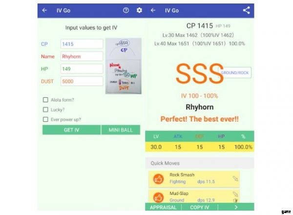 GamePress’s calculator website for Pokémon Go is popular because of its simplicity and accuracy. All you have to do is to input the Pokémon type, CP, Stamina or HP, and amount of Stardust required for leveling up. You won’t need to provide game account access to the webpage. You can simply tick the icon or box to indicate specific conditions of the Pokemon. For instance, whether the Pokemon is powered up, obtained by hatching an egg or a lucky catch. The Pokémon Go IV Calculator gives you the exact IVs once you hit the Calculate button.