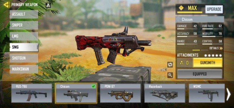 あなたがトリガーに満足し、最前線にいるのが好きなら、Chicomはあなたと一緒に持っていくのに適したサブマシンガンかもしれません.一見、このバッドボーイはアグレッシブに見えますが、それはチームファイトでのパフォーマンスにも及びます。 COD Mobile の SMG 武器庫の中で最高のダメージと範囲の統計を持っているわけではありませんが、その発砲率と機動性は誰にとっても好ましいものです。その迅速なスコープインとスコープアウトにより、最も重要な状況で正確に射撃することもできます.正しく使用すれば、Chicom は敵対状態の最中にリロードしなくても連続キルを達成できます。