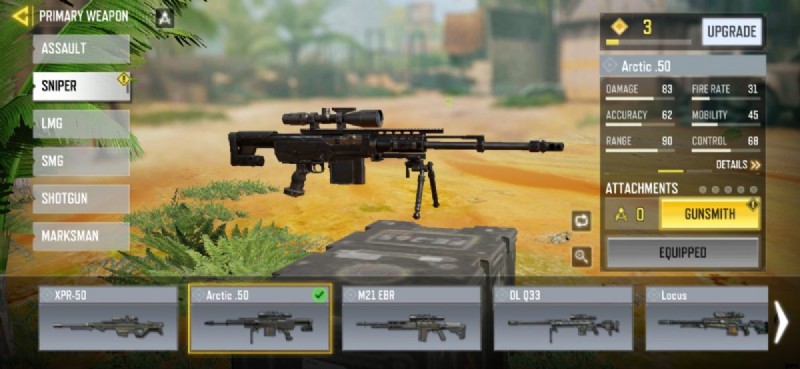 Arctic .50 は、Call of Duty Mobile のもう 1 つのお気に入りの狙撃銃です。ローカスと同等の射程距離とダメージ率、アウトローをはるかに上回るコントロールを備えています。もちろん、トレードオフも伴います。発射速度の点で多くの欠点があり、その機動性もかなり重いです。しかし、真の狙撃兵の役割を引き受ける場合、それはあなたの経験に大きな影響を与えるべきではありません. Arctic .50 では、マップ上で適切な場所を見つけて移動を最小限に抑えることで、生存率とキル率を高めることができます。